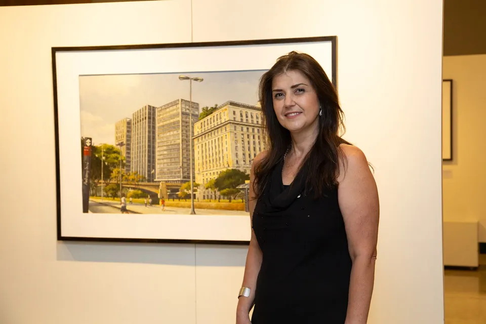 Para compor a exposição, Cristiane compartilhou com a Diretoria Cultural da APM um catálogo com cerca de 60 obras, das quais dez foram selecionadas, seguindo o princípio de estabelecer uma comparação entre a São Paulo antiga e a atual. Entre os trabalhos apresentados, alguns são premiados, como “Vale do Anhangabaú” e a obra que retrata os edifícios Copan e Itália — esta última passará a integrar o acervo da entidade.