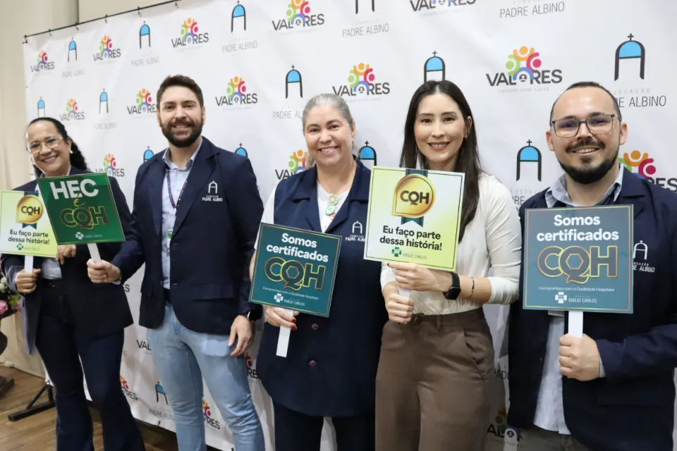 O evento de entrega do selo contou com a presença da coronel Míriam Borges de Souza Bittar, membro da governança do CQH; Adriani Izabel de Souza Moraes, gerente do Núcleo de Qualidade; José Carlos Rodrigues Amarante, presidente do Conselho de Curadores; Luís Fernando Colla, diretor médico dos hospitais da Fundação Padre Albino; Renata Rocha Bugatti, diretora de Saúde e Assistência Social; e colaboradores de diferentes setores e autoridades dos Hospitais Emílio Carlos e Padre Albino.